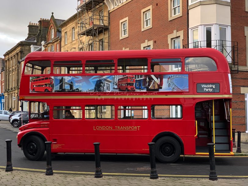 Outside the register office, a Routemaster bus was awaiting the wedding party.