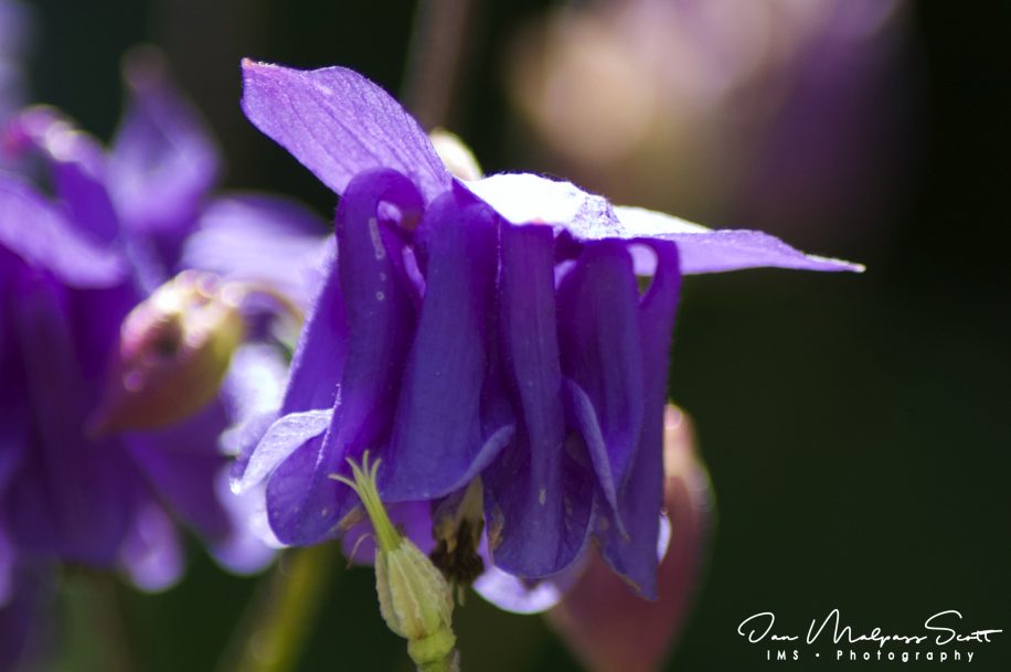 Aquilegia vulgaris is a species of columbine native to Europe with common names that include: European columbine, common columbine, granny’s nightcap, and granny’s bonnet. It is a flowering herbaceous perennial plant growing to 1.2 m tall, with branched, thinly hairy stems. The leaves are biternate; each leaf has three groups of three leaflets. The flowers, in various shades of purple, blue, pink and white, are pendent or horizontal with strongly hooked spurs, and appear in early summer.