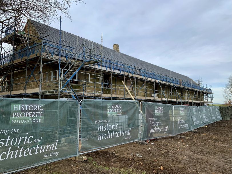 The new cafe and toilets under construction at Belsay Castle, Northumberland