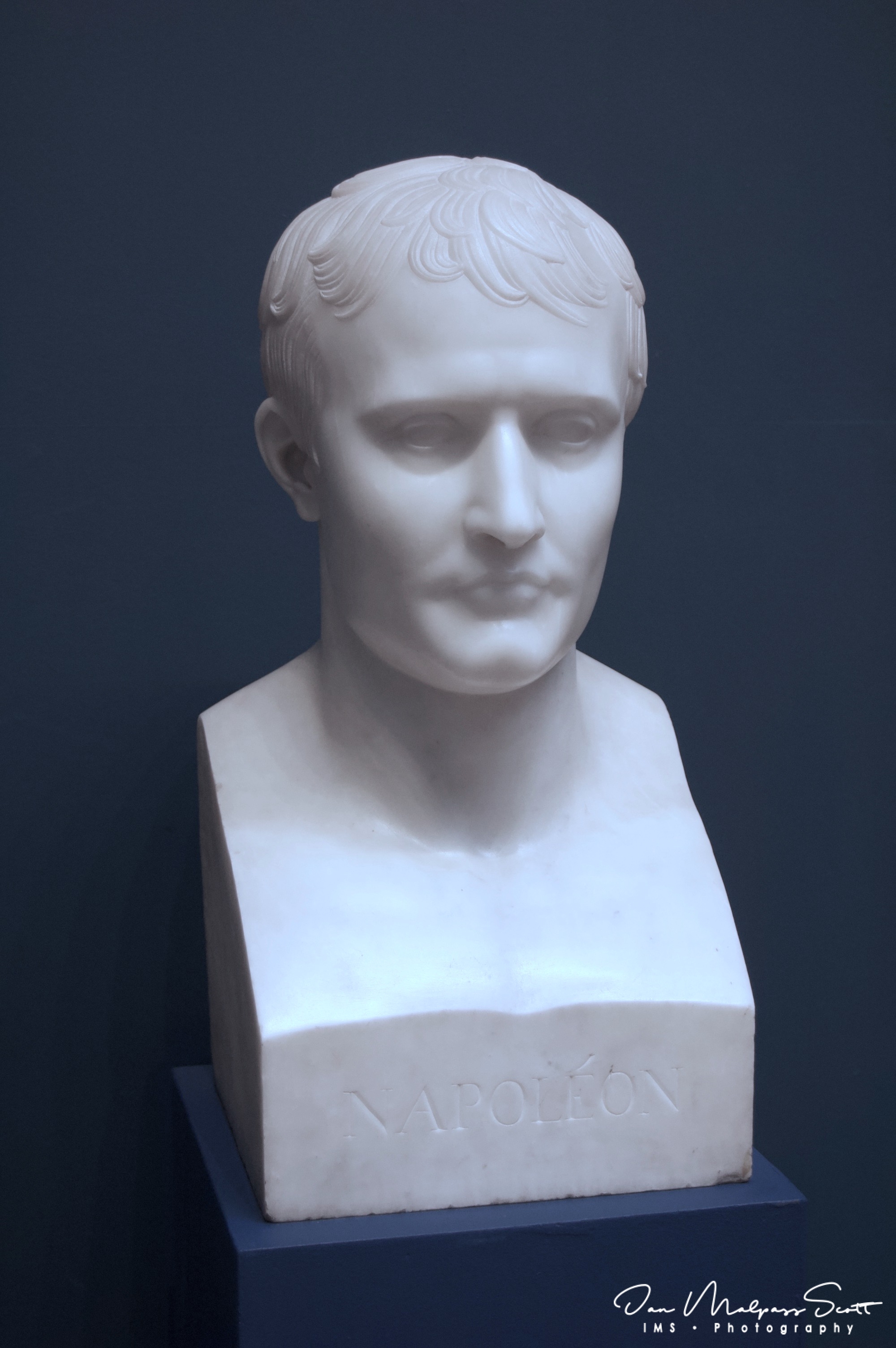 This bust numbered 239 was made at the school of sculpture set up by Napoleon in Carrara, Italy. His sister, Elisa Bonaparte-Baciocchi, Grand Duchess of Lucca oversaw the production of official sculptures.