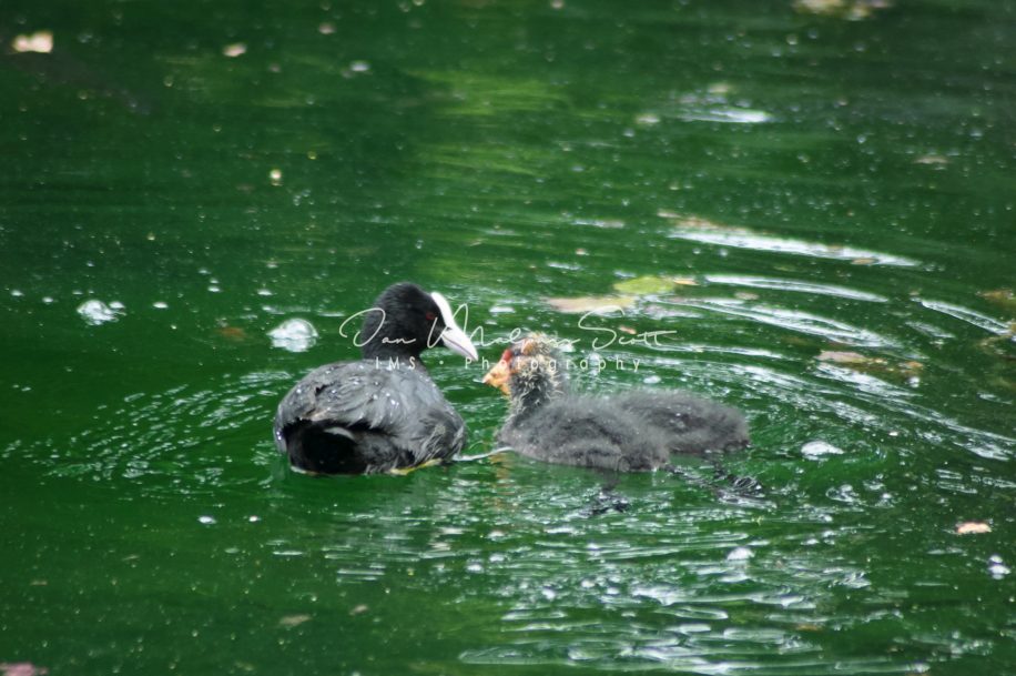 Coot & chicks on the river Nau, Langenau, Germany.