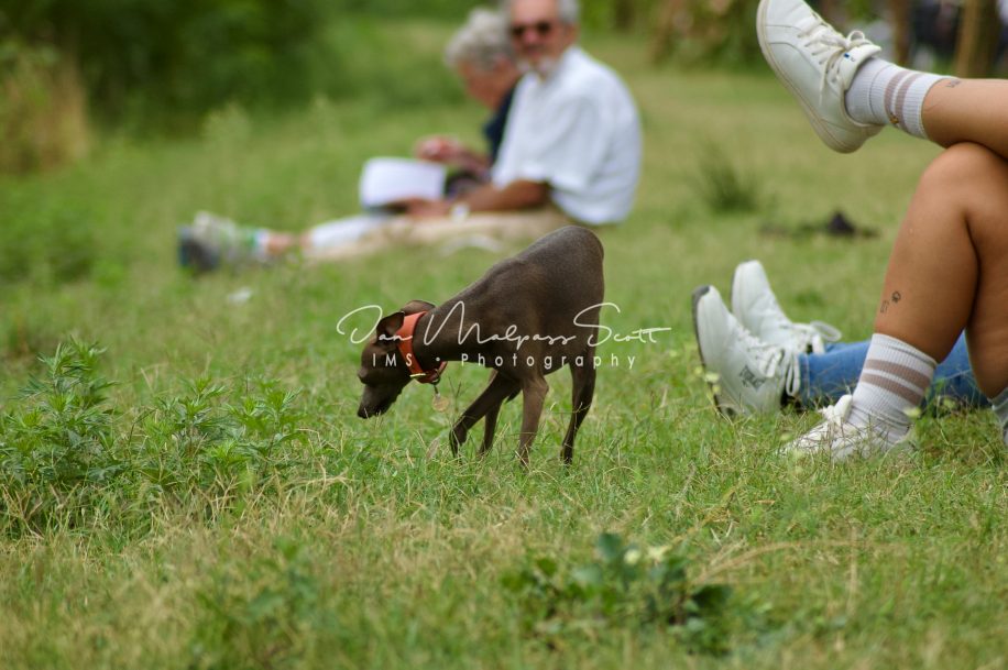 An Italian Greyhound on the banks of the river Arno, Florence, Italy