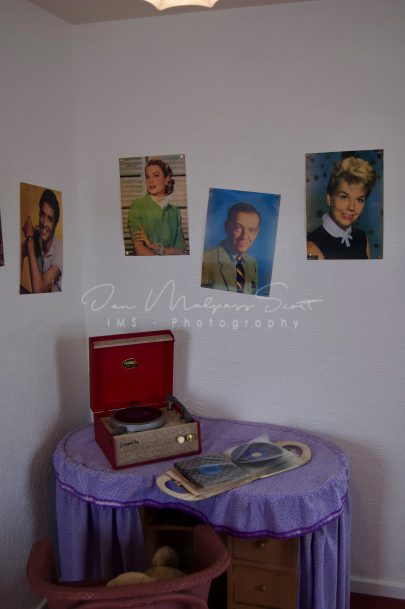 Record player in one of the new 1950s houses, Beamish Museum, Co. Durham