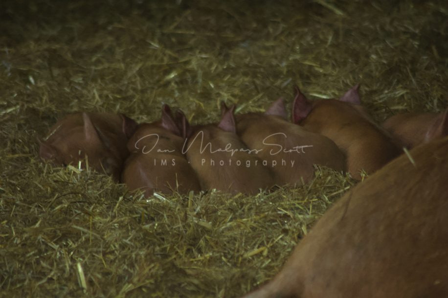 Tamworth piglets at Home Farm, Beamish Museum, County Durham.
